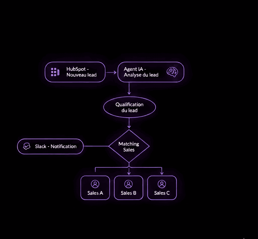 À chaque nouveau prospect, un agent IA analyse son profil (secteur, taille, source, intention…) et le qualifie instantanément.