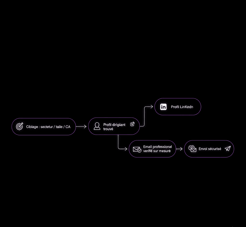 À partir d’un profil dirigeant précis, le workflow utilise Surfe pour identifier légalement les bons décideurs.